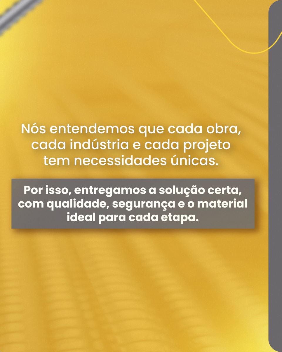 Por isso, trabalhamos para entregar bem mais do que aço e ferro: oferecemos confiança, segurança e a solução ideal para cada necessidade do projeto.